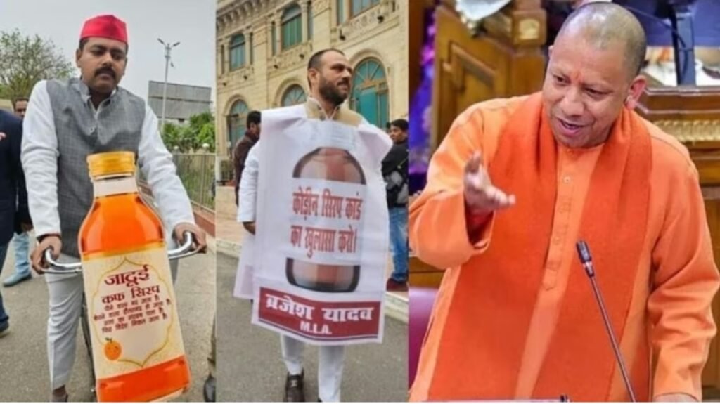 एक वरिष्ठ राजनीतिक अध्येता का मानना है,यह टकराव बताता है कि यूपी की राजनीति अब केवल भाषणों की नहीं, प्रतीकों और पंक्तियों की भी लड़ाई बन चुकी है।पोस्टर-बैनर और कट-आउट की राजनीति सत्र के पहले ही दिन समाजवादी पार्टी के विधायक पूरी तैयारी के साथ पहुंचे।शिकोहाबाद से सपा विधायक मुकेश वर्मा कोडीन कफ सिरप का पोस्टर पहनकर विधानसभा पहुंचे और सवाल दागा—“