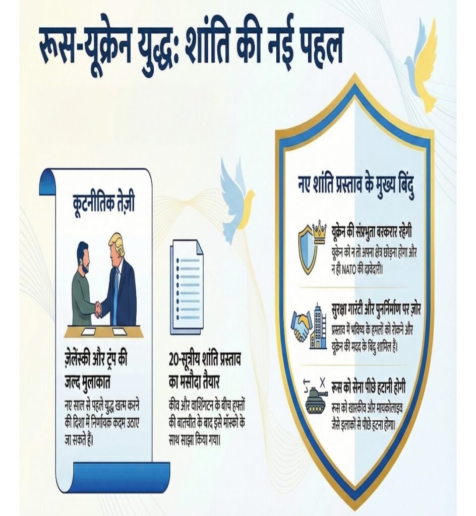 ज़ेलेंस्की ने सोशल मीडिया पर लिखा,“नया साल आने से पहले बहुत कुछ तय हो सकता है। हम एक भी दिन बर्बाद नहीं कर रहे। राष्ट्रपति ट्रंप के साथ उच्च-स्तरीय बैठक पर सहमति बन चुकी है।यह बयान ऐसे समय आया है जब कीव और वॉशिंगटन के बीच हफ्तों से गहन बातचीत चल रही है और इसके परिणामस्वरूप 20-सूत्रीय शांति प्रस्ताव का मसौदा तैयार हुआ है, जिसे मॉस्को के साथ भी साझा किया जा चुका है।