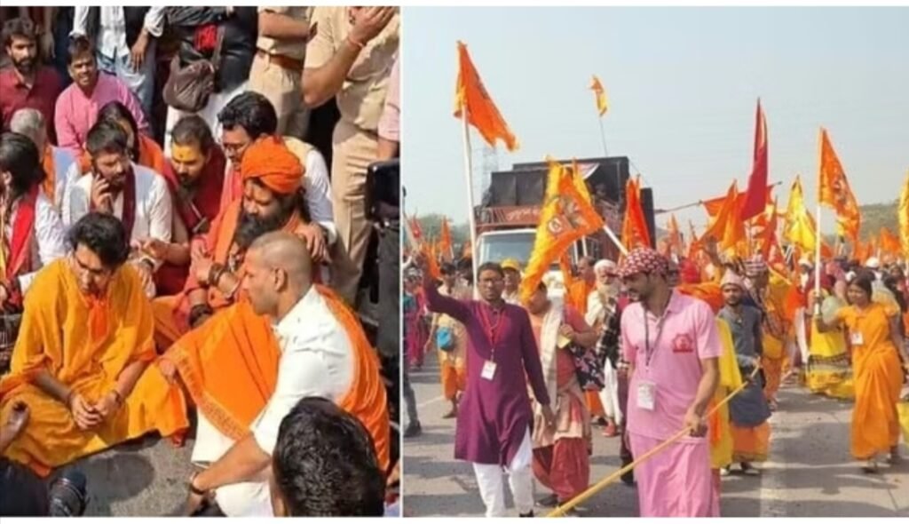 बाबा बागेश्वर धीरेंद्र कृष्ण शास्त्री की ‘सनातन हिंदू एकता पदयात्रा’ शनिवार सुबह जैसे ही फरीदाबाद पहुंची, शहर भक्तिमय माहौल में सराबोर हो गया। दिल्ली के छतरपुर से शुरुआत कर मांगर कट–अरावली मार्ग से गुजरती यह यात्रा पाली में दाखिल हुई तो जय श्रीराम, सीताराम और ढोल–नगाड़ों की गूंज ने माहौल को पूरी तरह आध्यात्मिक बना दिया। इस भव्य पदयात्रा में देश के नामी रेसलर द ग्रेट खली, भारतीय क्रिकेटर शिखर धवन और हजारों की संख्या में श्रद्धालु शामिल हुए।