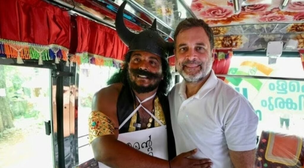 केरल की सियासत इन दिनों सिर्फ भाषणों और रैलियों तक सीमित नहीं है, बल्कि अब इसमें नाटक, प्रतीक और व्यंग्य का तड़का भी खुलकर नजर आ रहा है। बालुस्सेरी की एक साधारण बस में जो दृश्य सामने आया, उसने पूरे चुनावी माहौल को अचानक ‘मनोरंजन और संदेश’ के संगम में बदल दिया—जब राहुल गांधी की मुलाकात ‘यमराज’ से हो गई।