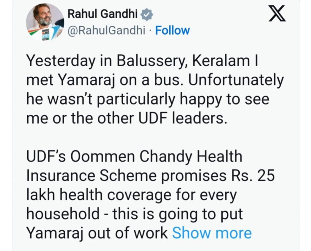 केरल में 9 अप्रैल को मतदान होना है और 4 मई को नतीजे घोषित होंगे।इस बीच, यह तय है कि यूडीएफ का यह ‘यमराज वाला प्रयोग’ चुनावी चर्चा का केंद्र बन चुका है।